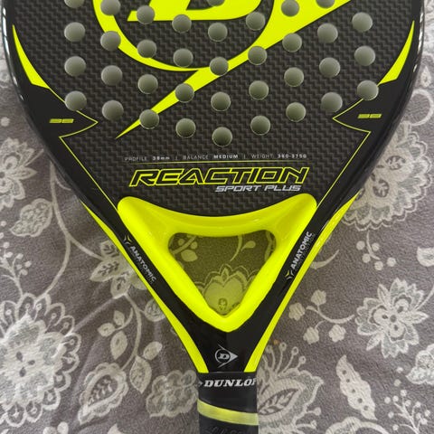 Dunlop Ignition Sport Plus padelbat i sort design. Battet har rund hovedform med perforeret slagflade og honeycomb-mønster. Vægten er angivet til 365 g, og modellen er markeret med balance medium. Grebet er udstyret med Anatomic Construction for bedre håndtering. Velegnet til padelspillere, der ønsker et bat med medium balance og standardvægt.