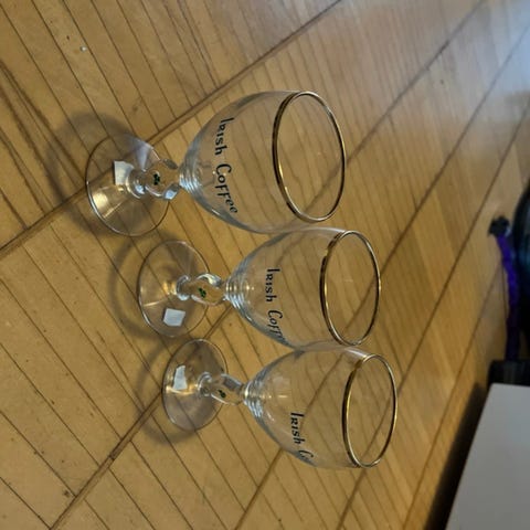 Irish coffee glas med hank. Glas i klar farve med fod og sidehank, egnet til servering af varme eller kolde drikke i køkken eller spisestue.