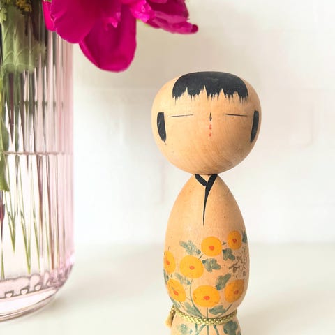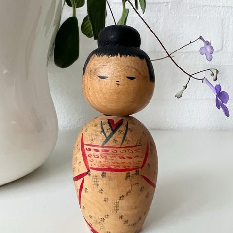 Sød japansk kokeshi pige med bambusmotiv på kimonoen 🇯🇵