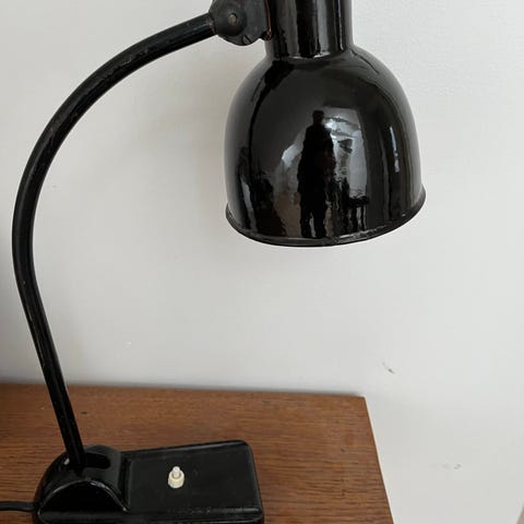 Gammel tysk bauhauslampe, ca 40 cm høj. Virker fint.