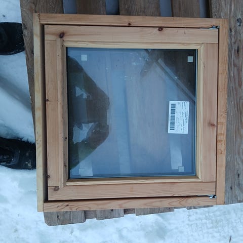 Trævindue med enkelt glas. Rammen er udført i træ med en side i rødmalet finish og en side i naturtræ. Vinduet har enkelt glas og er velegnet til brug i fx udhuse, skure eller andre mindre bygninger, hvor der ønskes et simpelt vindue i træ.
