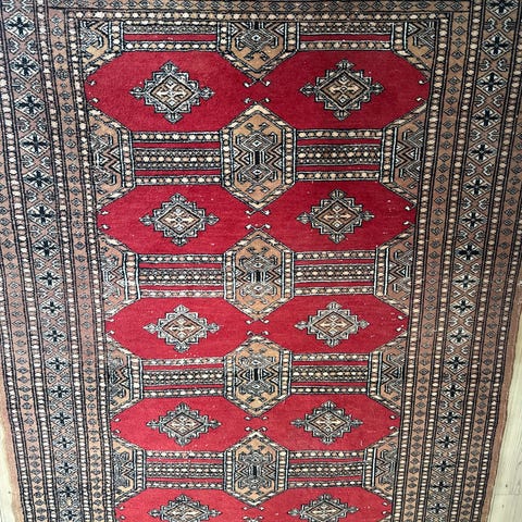 Ægte tæppe i rødlige farver