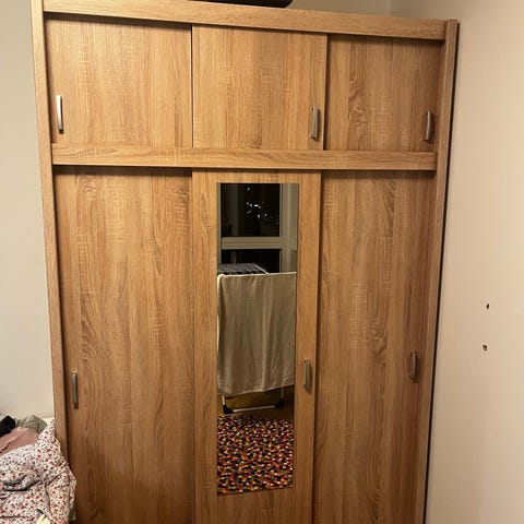 Garderobeskab med skydelåger og spejl