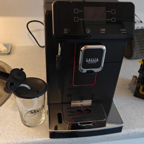 Gaggia Brera fuldautomatisk espressomaskine i rustfrit stål. Har fulgt mig siden 2017. Har altid brugt afkalket vand og afkalket og renset maskinen hver anden måned. Har for nylig fået ny pumpe. Sælges kun på grund af opgradering til større model. Tænd-knappen er lidt træg hvorfor den lave pris. Ellers laver den fremragende espresso og mælkeskum (hvis man er til det).