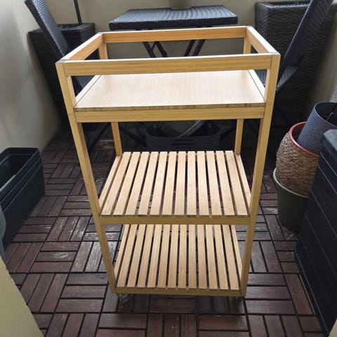 Tandlæge bord i virkelig flot original stand i hvidt metal med glasplade på toppen. Møblet har i alt otte skuffer fordelt på to kolonner samt en åben hylde nederst til opbevaring af håndklæder eller andre genstande. Der er håndtag i siden og hjul under benene, så det kan flyttes rundt efter behov. Egnet som opbevaringsmøbel i badeværelse, køkken, klinik eller kontor. Fra 40’erne, Dansk