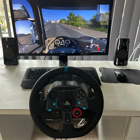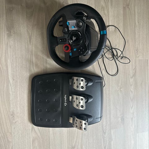 Logitech G29 rat og pedalsæt i sort.