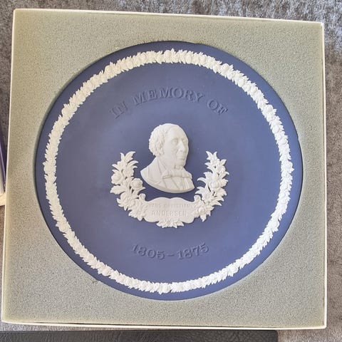 HC Andersen, Plakette, 1930, HC Andersen på denne dekorative gamle plakette i kobber plade