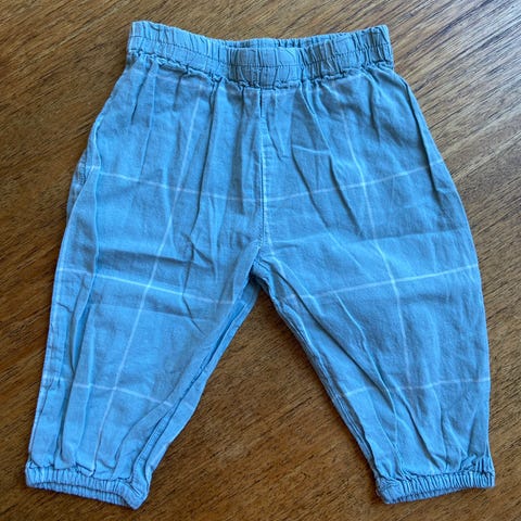 Sælger disse super bløde og klassiske strikbukser i en flot støvet grøn/blå farve str 62 fra Serendipity
