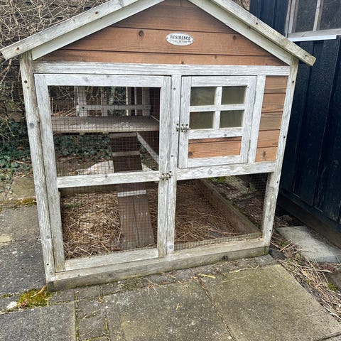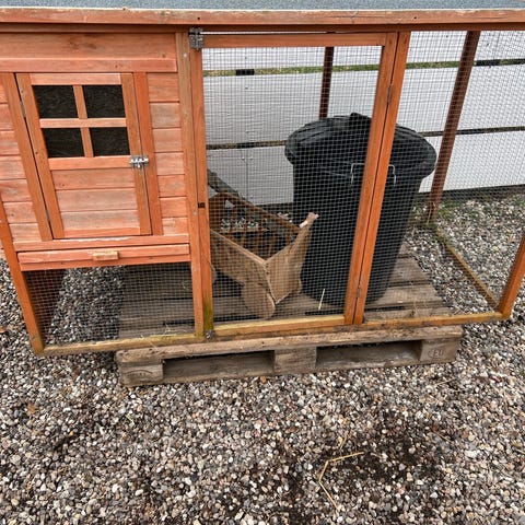 Kaninbur og lukket løbegård foræres væk. Buret og løbegården er lavet, så det passer sammen, og kaninen kan løbe frit mellem det lille bur og den større, lukkede løbegård. Løbegården har lige fået nyt tag på 2/3-dele af gården, så kaninen kan sidde i skygge eller tørvejr. Den sidste 1/3-del er lavet med en toplåge, der kan åbnes. Der er sat ekstra brædder på den ene, så man kan sidde med ryggen op af dem og hygge med sin kanin. Den åbne løbegård med de 24 felter er ikke til salg. Vær opmærksom på, at buret er ca. 147 cm langt og løbegården ca. 270 cm, så det kræver en trailer eller stor vogn at flytte det.