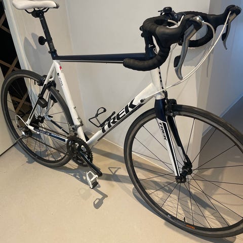 Den perfekte begynder-racer. Tiagra/Sora gear, Bontrager alu-hjul, kombi-pedal alm/Shimano SPD klamp.
