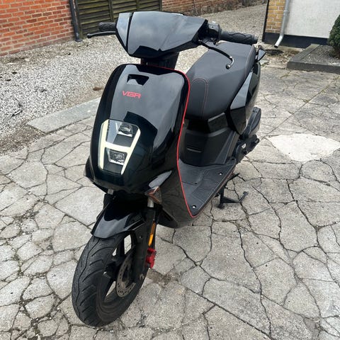VGA SX scooter i sort. Modellen har analog hastighedsmåler kombineret med lille digital display i instrumentbrættet. Scooteren er udstyret med fodstøtte, bagagebærer og standard lygte- og blinklysudstyr. Egnede anvendelser omfatter daglig transport på kortere afstande i by- og nærmiljø.