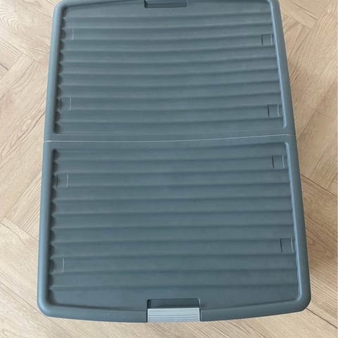 Med hjul og låg, passer perfekt under sengen. Gennemsigtig plast gør det let at se, hvad der er i kassen.