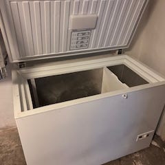 Kummefryser i hvid. Fryseren er topbetjent med låg og håndtag på fronten. Indersiden er udført i metal med glatte flader, der gør den let at rengøre. Velegnet til opbevaring af frosne fødevarer i fx bryggers, kælder eller garage. Nærmere specifikationer som kapacitet og energiklasse er ikke oplyst.