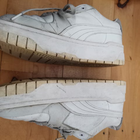 Puma sneakers i str. 38. Modellen er lav og har snørelukning. Skoene er overvejende hvide med sort Puma-logo og sidepanel. Overdelen har perforeringer ved tæerne for ventilation, og sålen er flad med mønster for bedre greb. Velegnet som hverdagssko eller fritidssko. Sælger pga størrelse.