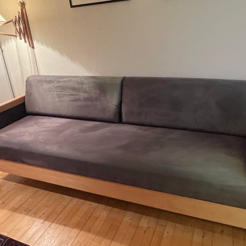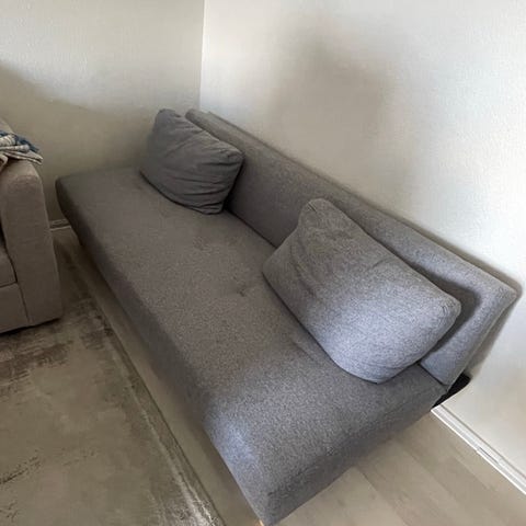 Brugt sovesofa i sort uld sælges billigt, da en fjeder er knækket. Men ellers en rigtig god madras.