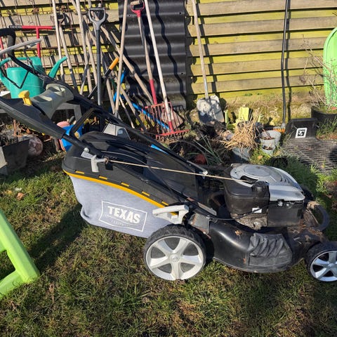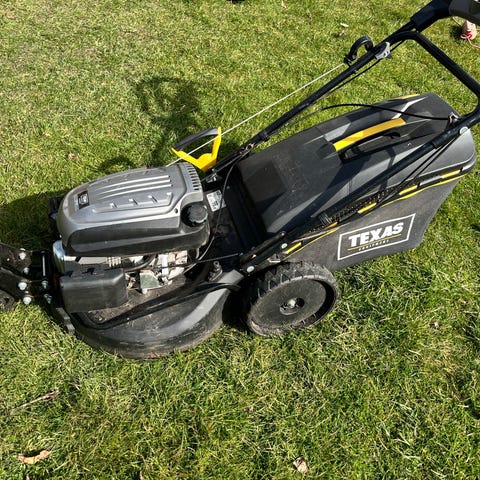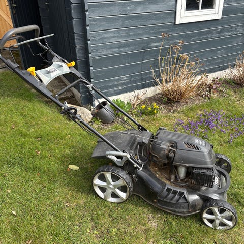 Garden DG350 plæneklipper til benzin. Plæneklipperen har grøn motorafdækning og sort skjold med fire hjul. Håndtaget er buet med betjeningsgreb monteret øverst. Egnet til klipning af almindelige græsplæner i have og mindre udendørsarealer.