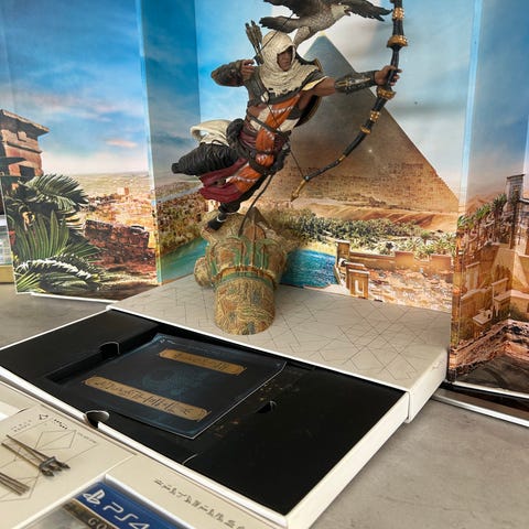 Ubisoft Assassin’s Creed IV Black Flag samlerfigur af karakteren Edward Kenway. Figuren forestiller Edward Kenway stående med udstrakte arme og to pistoler, iført kappe, hætte og piratinspireret Assassin-outfit. Figuren står på en detaljeret base med kranie, sten og dekorationer, som matcher spillets pirat- og eventyrtema. Velegnet som samlerobjekt eller udstillingsfigur for fans af Assassin’s Creed-serien og Assassin’s Creed IV Black Flag.