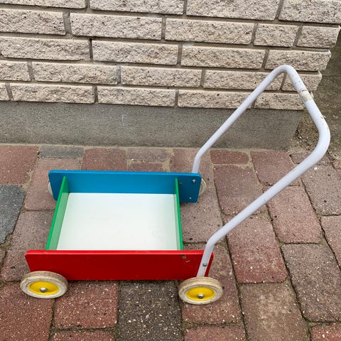 Gåvogn hvor sædet kan åbnes og barnet kan gemme ting/legetøj i, brugt men i fin stand.