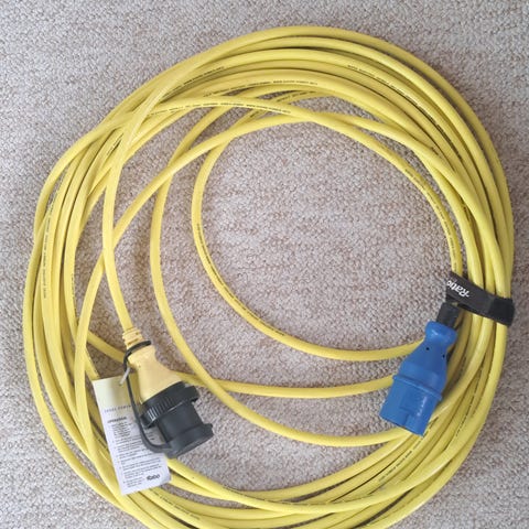 Forskellige landstrømsadaptorer fra alm stik til CEE stik og omvendt