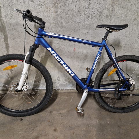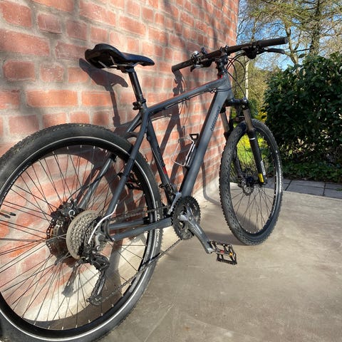 Cyklen fremstår pæn med almindelige brugsspor, men er mekanisk upåklagelig og klar til både hverdag og skov.