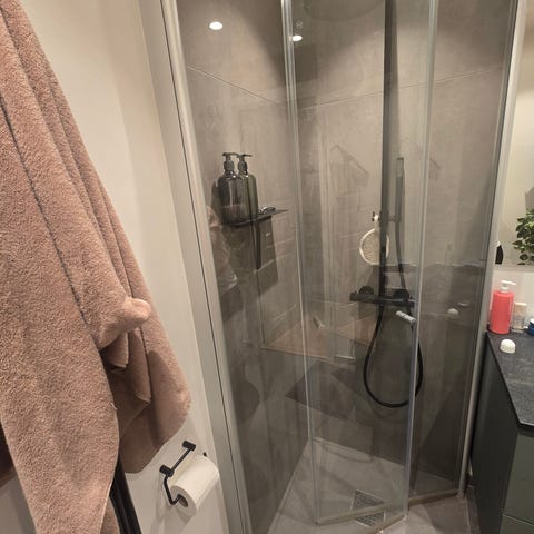 Brusehjørne glas med skydedøre