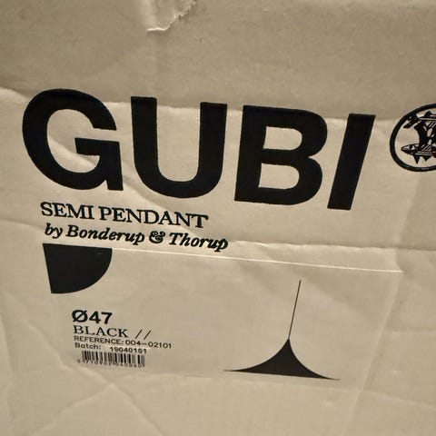Den smukke klassiker Semi Pendant fra 1968, Ø 47 cm i grå-blå med sort storledning. Fungerer fint, men er blevet ramt nogle gange på kanten og “bølger” derfor lidt rundt i kanten -ses tydeligt i nogle vinkler, i andre vinkler lægger man ikke mærke til det. Prisen er sat efter det.