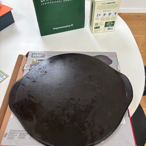 Rund pizzasten egnet til brug i ovn eller grill. Stenen kan anvendes til bagning af pizza, brød eller andre bagværk, hvor der ønskes en sprød bund. Leveres som vist på billedet med tydelige brugsspor på overfladen.