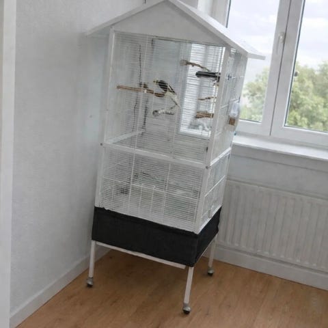 Virkelig dejligt og moderne , flot bur , til mindre fugle.
