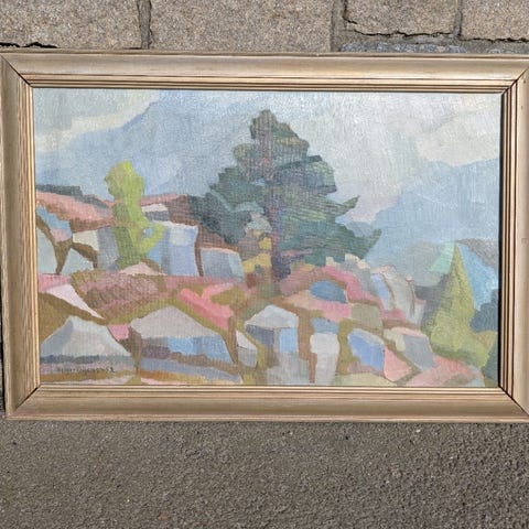 Olie på lærred, 56 x 80 cm (ramme); Signeret og dateret -52.