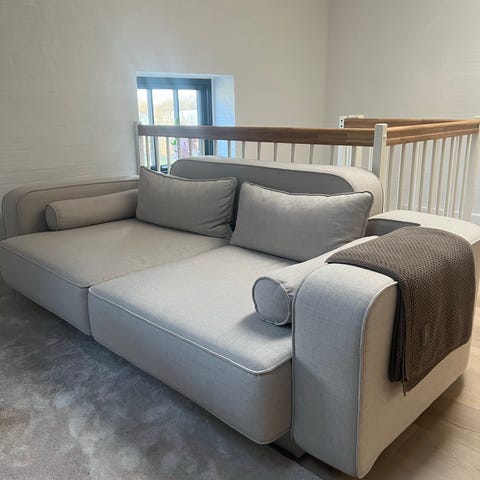Formel A ryglæn til Twin sofaen så den kan blive til den lille model på 230 cm. Farven hedder mustard og stoffer velvet. Fra dyre og røgfrit hjem.