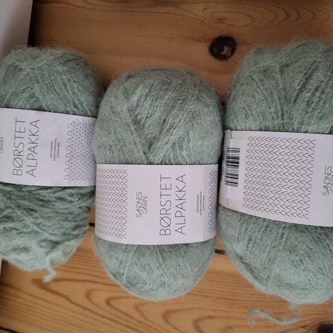 2: alpakka følgetråd, 100% alpaca, farve 4628, 400m pr 50g, 9 nøgler. Pris 450kr