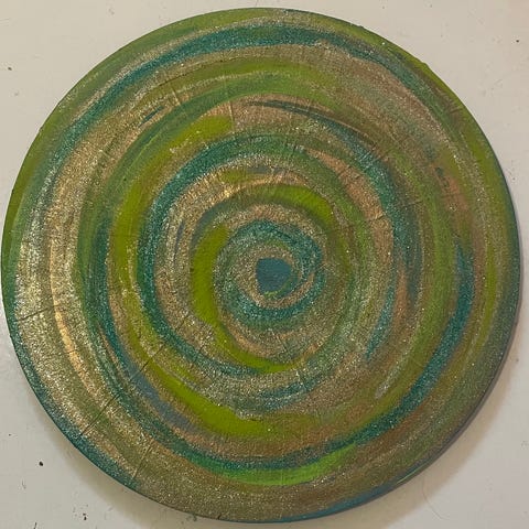 Rund vægdekoration i brun og guld