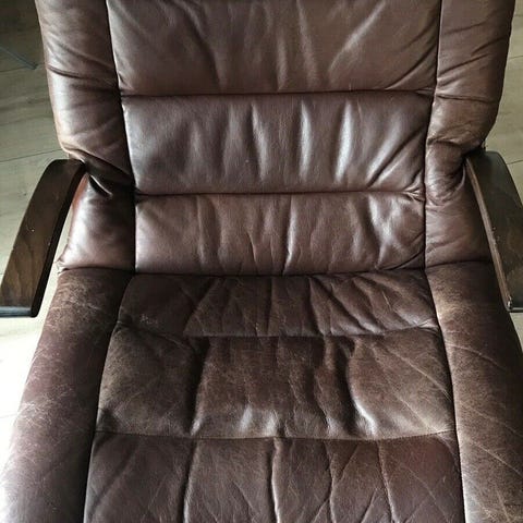 Cognacfarvet læder med patina, men ingen revner i læderet.