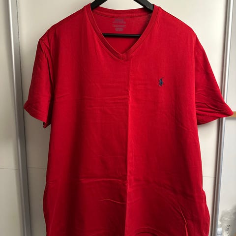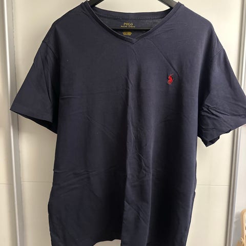 Ralph Lauren Polo T-shirt til herre i størrelse XL. T-shirten er grå og fremstillet i bomuld. Den har V-hals og kortærmet design. Diskret broderet logo på brystet. Velegnet til hverdagsbrug og afslappede anledninger.