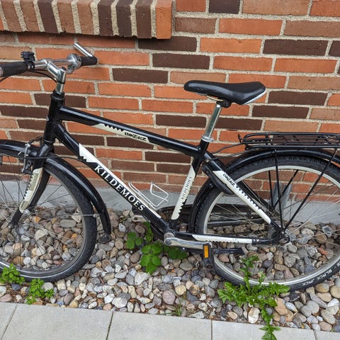 Cyklen har blå stel med orange og sorte detaljer samt brede dæk, der egner sig til både vej og let terræn. Udstyret med fladt styr, saddel med mindre slitage på siden og bagskærm. Velegnet til større børn, der har brug for en cykel i juniorstørrelse med 26 tommer hjul.