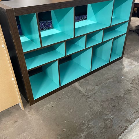 Sort bogreol/reol/rumdeler som både kan stå eller ligge ned. Pæn på begge sider. Faste skillerum.