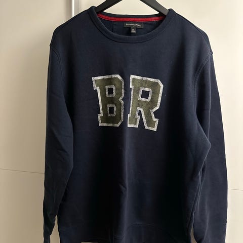 Banana Republic sweatshirt til herre i størrelse XL. Trøjen er grå og fremstillet i bomuld. Klassisk rund hals og lange ærmer. Foran er der stort BR-logo, og på ærmet er der mindre trykt logo. Velegnet som casual hverdagstrøje eller som ekstra lag over T-shirt.