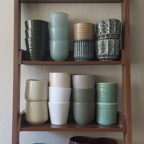 Masse fine udendørs krukker.