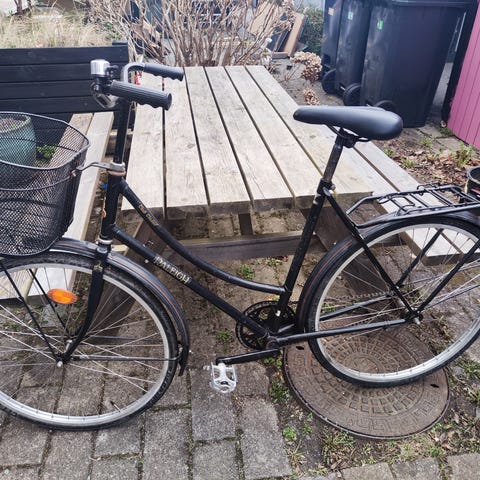 Rigtig fin damecykel, hvor gear og bremser virker som det skal. Standen er fin, men da det er en ældre cykel er der en del patina/rust/pletter på den.