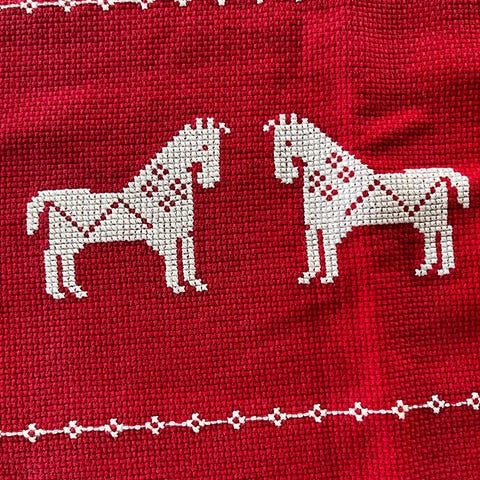 Søgeord: Retro jule stjerner juledug. Julepynt. Broderi. Julekalender