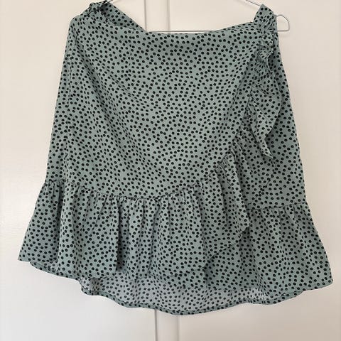 Just nederdel til kvinder i størrelse S. Nederdelen er grøn og har flere lag med volantdetaljer. Den har elastik i taljen for bedre pasform. Velegnet som hverdags- eller festnederdel afhængigt af styling.