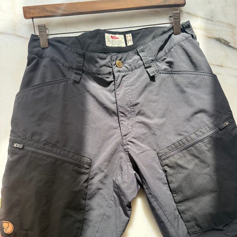Sort/grå Vidda Pro bukser i ret pæn stand, og med en enkelt reparation nederst ved det ene ben.