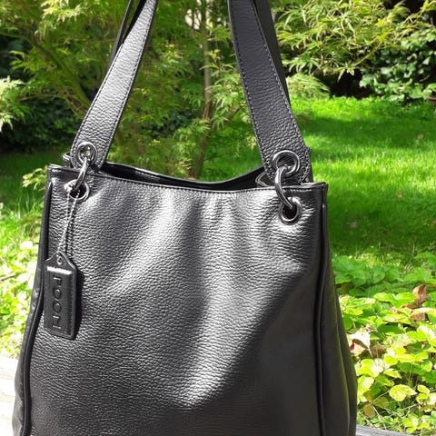 Lille skuldertaske til kvinde i sort. Tasken har et hovedrum med lynlåslukning samt en frontlomme med klaplås og ekstra lynlåslomme foran. Bagsiden har et glat panel. Tasken har en justerbar rem i sort samt en ekstra, bred skulderrem med kontrastfarvet tekst. Velegnet til opbevaring af mindre genstande som telefon, pung og nøgler.