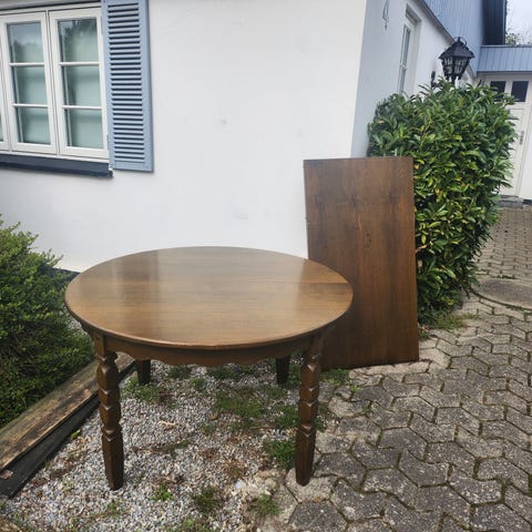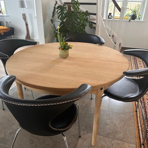 Rund spisebord i massiv egetræ inkl. 3 tillægsplader