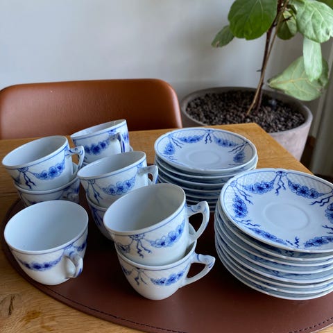 10 kaffekopper med underkopper.