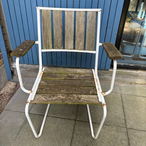 Retro frisvinger wire havestole / trådstole med patina, mål: B: 59 x D: 59 x H: 41 / 71 cm