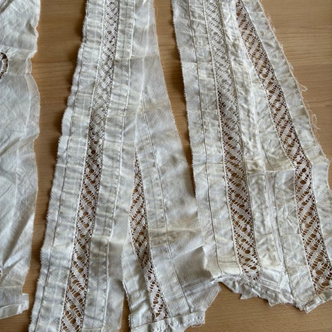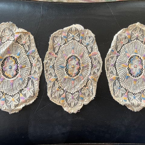 14 stk gamle vintage små lyseduge/kniplinger 11 cm i diameter. Kan anvendes som coster, serviet til glas, mellemlæg til små tallerkener.