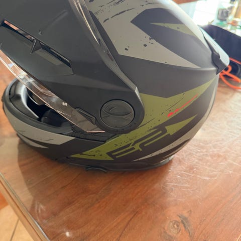 Super lækker Flip Up hjelm i blank sort lak uden ridser eller lign overhovedet. Indvendigt 100% som ny. Ingen pletter eller lign. Kun brugt som passager hjelm på 1 kort tur. Ellers aldrig brugt. Har lille ridse øverst på visiret ellers fremstår hjelmen 100% som fabriksny. Du vil med sikkerhed ikke blive skuffet. Ny pris 4000kr.