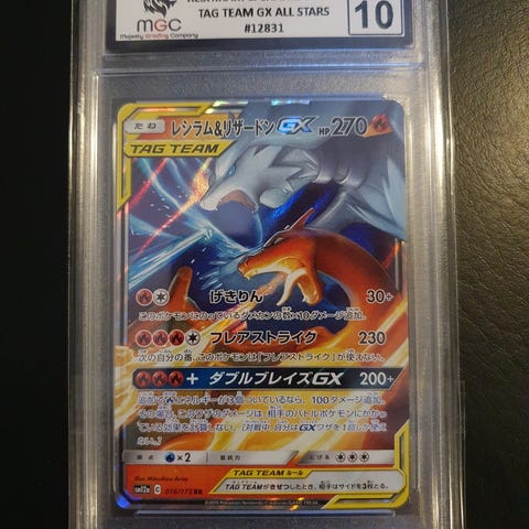 Samlekort, Pokemon, Sjældent Reshiram og Charizard GX TAG TEAM kort