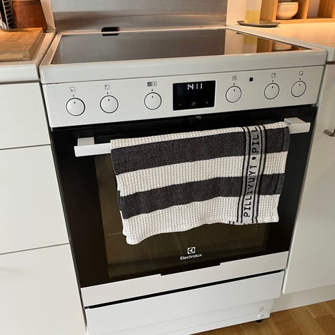 Electrolux induktion komfur med glaskeramisk induktionskogeplade og fire kogezoner. Komfuret har integreret ovn med frontbetjening via drejeknapper. Ovnrum med rist og bagepladeniveauer, glaslåge og indvendig belysning. Velegnet til almindelig madlavning og bagning i køkkenet. Farve overvejende hvid med sort kogeplade.
